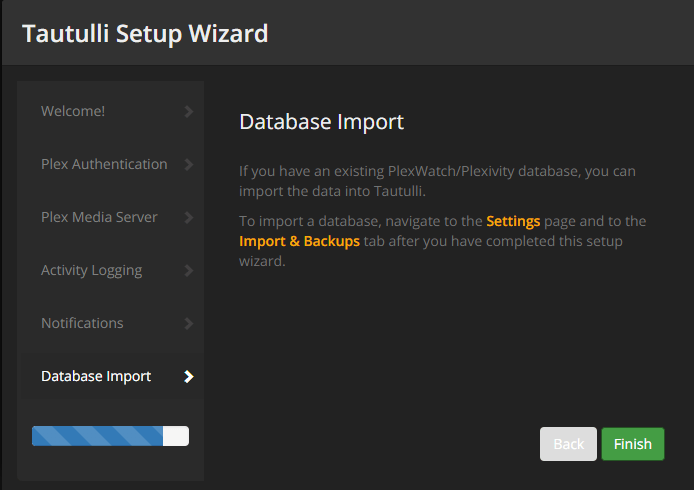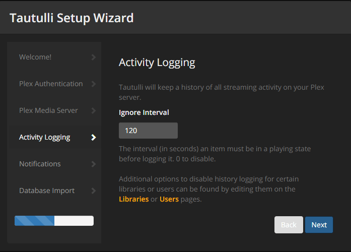 First time you go to the Tautulli site, you will be presented with the "Tautulli Setup Wizard". Click