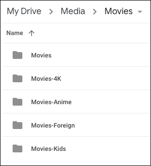 Note: Remember, folders are case sensitive in Google Drive and in Linux (e.g. 4K